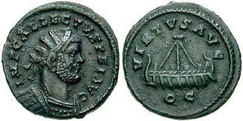 Verso: VIRTVSAVG Exe: QL - Galera naviga verso destra (Londinium).