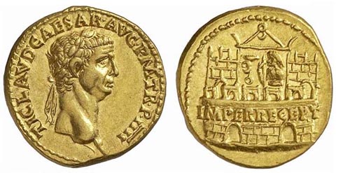 Dritto: TICLAVDIVSCAESARAVGPMTRPIMP - Testa nuda rivolta a sinistra.