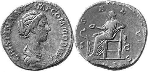seduta rivolta a sinistra, con in mano patera e cornucopia. 180-183 (Roma).