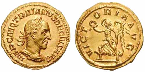 Verso: ADVENTVSAVG - Trajan Decius conduce