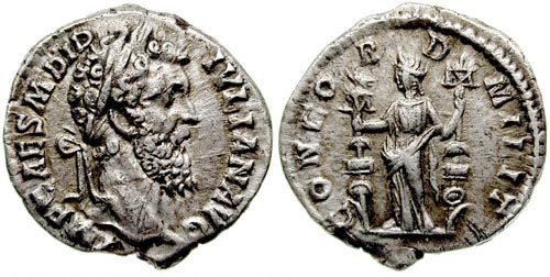 Dritto: IMPCAESMDIDSEVERIVLIANAVG - Capo coronato d'alloro, drappeggio,