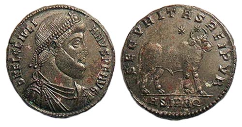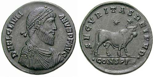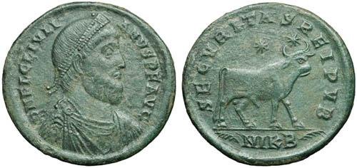 - Toro eretto verso destra, due stelle sopra. 361-363 (Sirmium).