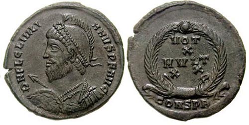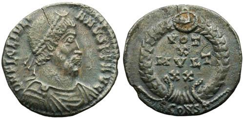 scudo con Legenda VOT/XX; Genio in basso a destra anche con scudo. 361-363 (Antioch).