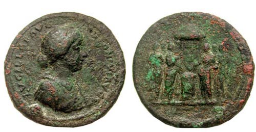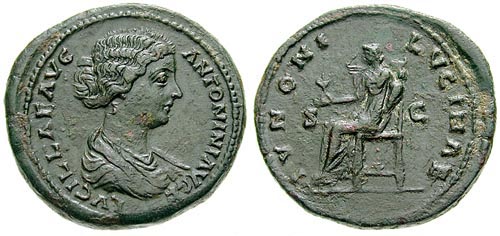 Dritto: LVCILLAEAVGANTONINIAVGF - Drappeggio con busto rivolto a destra.