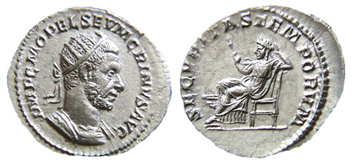 sinistra, con fulmine e scettro; Macrinus a sinistra.