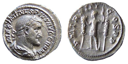 Verso: PMTRPIICOSPP - Maximinus in piedi rivolto