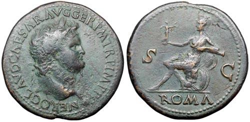 Dritto: NEROCLAVDCAESARAVGGERMANI - Capo coronato d'alloro rivolto a