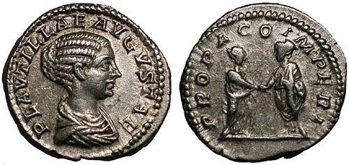 Verso: PROPAGOIMPERI - Plautilla in piedi a sinistra rivolto a destra,