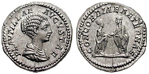 Verso: CONCORDIAEAETERNAE - Plautilla in piedi a sinistra rivolto a destra,