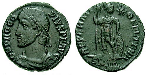 - Procopius in piedi, frontalmente, con labarum con mani tese su scudo.