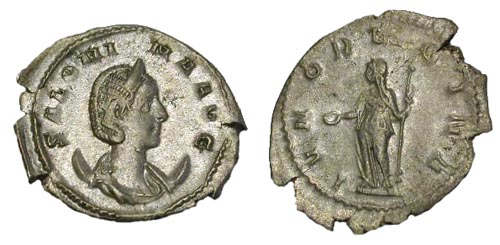Dritto: SALONINAAVG - Drappeggio e busto rivolto a destra su mezzaluna.