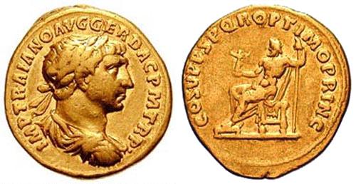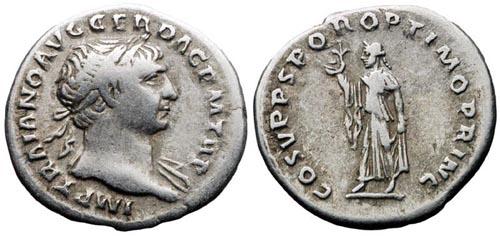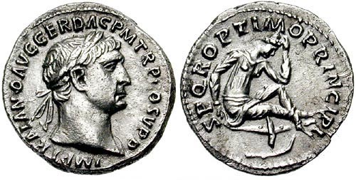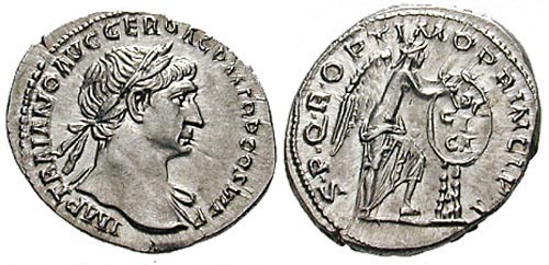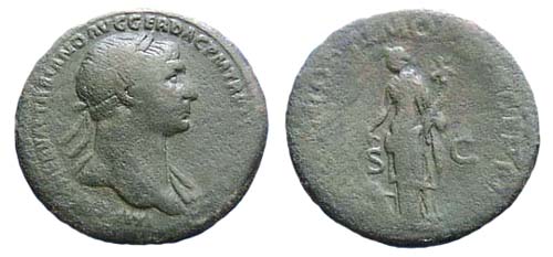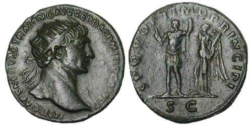 Verso: SPQROPTIMOPRINCIPI - Traiano in piedi