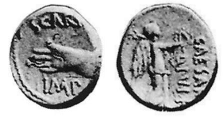 con la mano sinistra. IMP - CAESAR / DIVI -